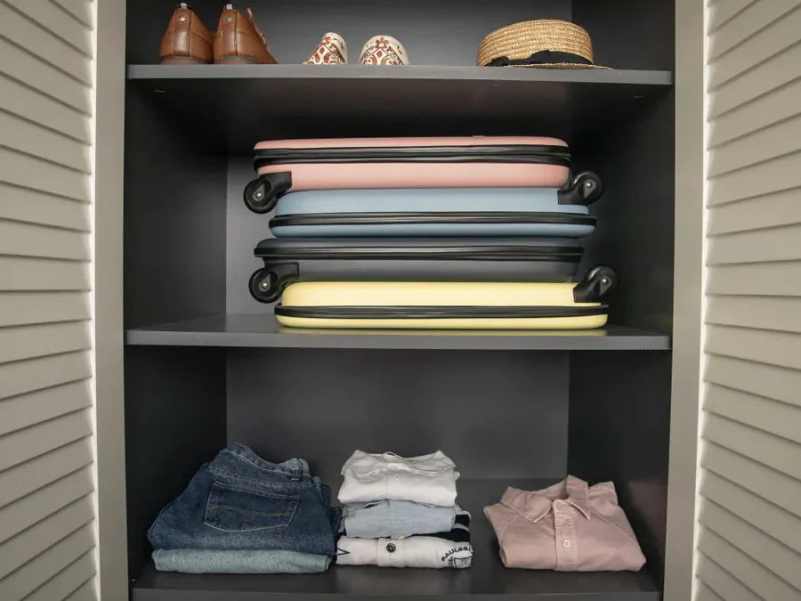 Declutter your living space by slimming down your suitcase to a compact size. This innovative collapsible feature allows to stow luggage away under beds, in closets, or in tight spaces, saving valuable room when not in use.